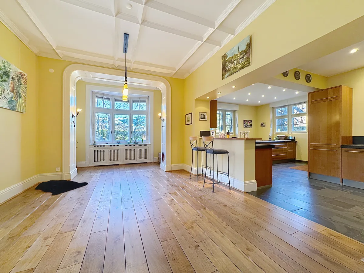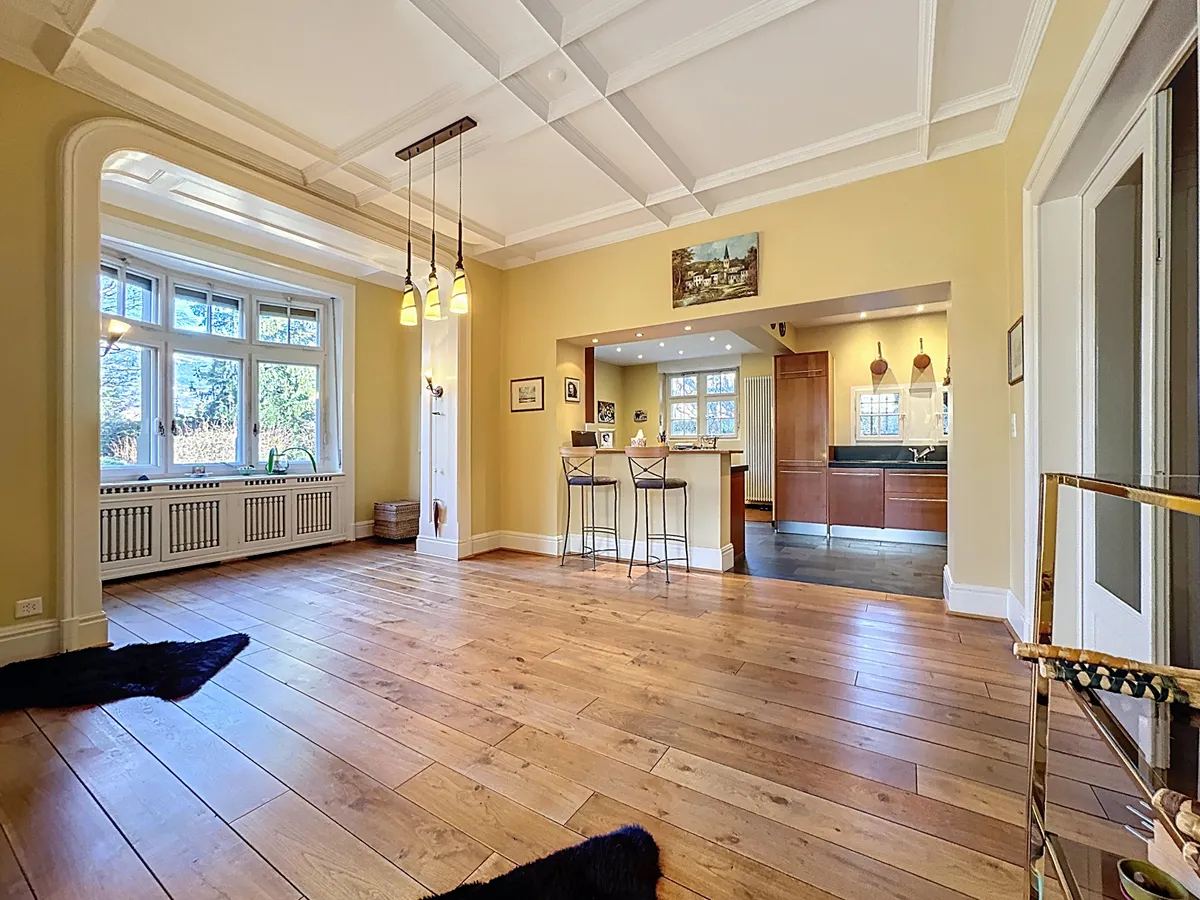 À Bex, à quelques pas de la gare et des commerces, cette maison de maître de 10.5 pièces se dévoile derrière un parc arboré remarquable de 2’779 m², entièrement clôturé, offrant une intimité rare.