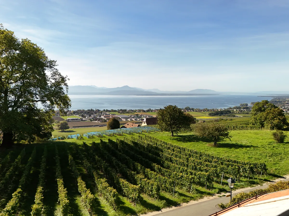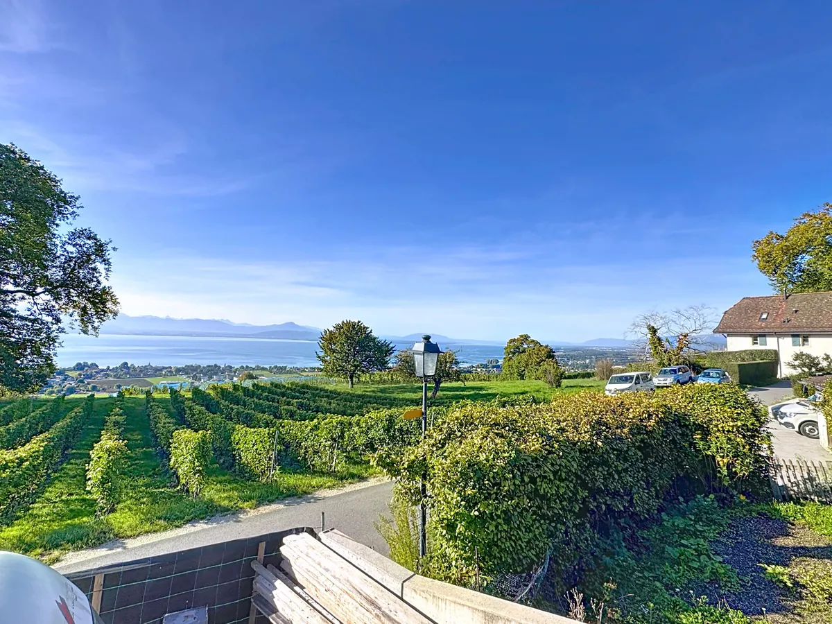 Dans un écrin de vignobles préservés, à seulement quelques minutes de Rolle, Féchy et Aubonne, se dévoile cette villa contemporaine d’exception. Érigée en 2025 sur une parcelle de 419 m² en bordure de zone viticole, elle offre à ses futurs propriétaires un luxe rare : celui de vivre dans un calme absolu, sans aucun vis-à-vis — seul le lac vous fait face, avec en toile de fond la majesté des Alpes.
