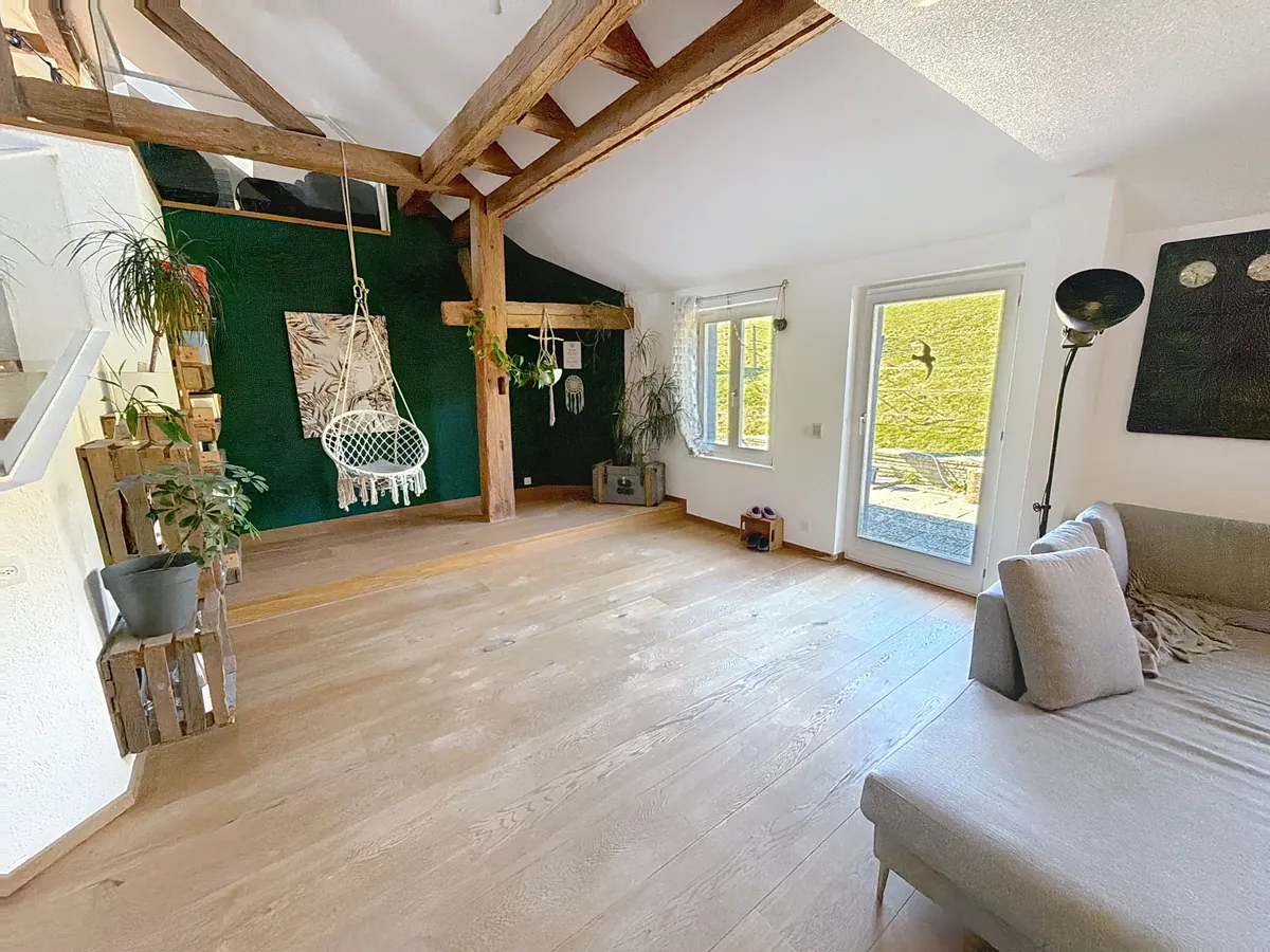 À seulement 10 minutes d’Épalinges et 15 minutes de Lausanne, cette ferme de caractère du XVIIIᵉ siècle, entièrement rénovée avec des matériaux nobles, offre une expérience de vie rare : l’espace, la nature, le silence… sans renoncer au confort moderne.