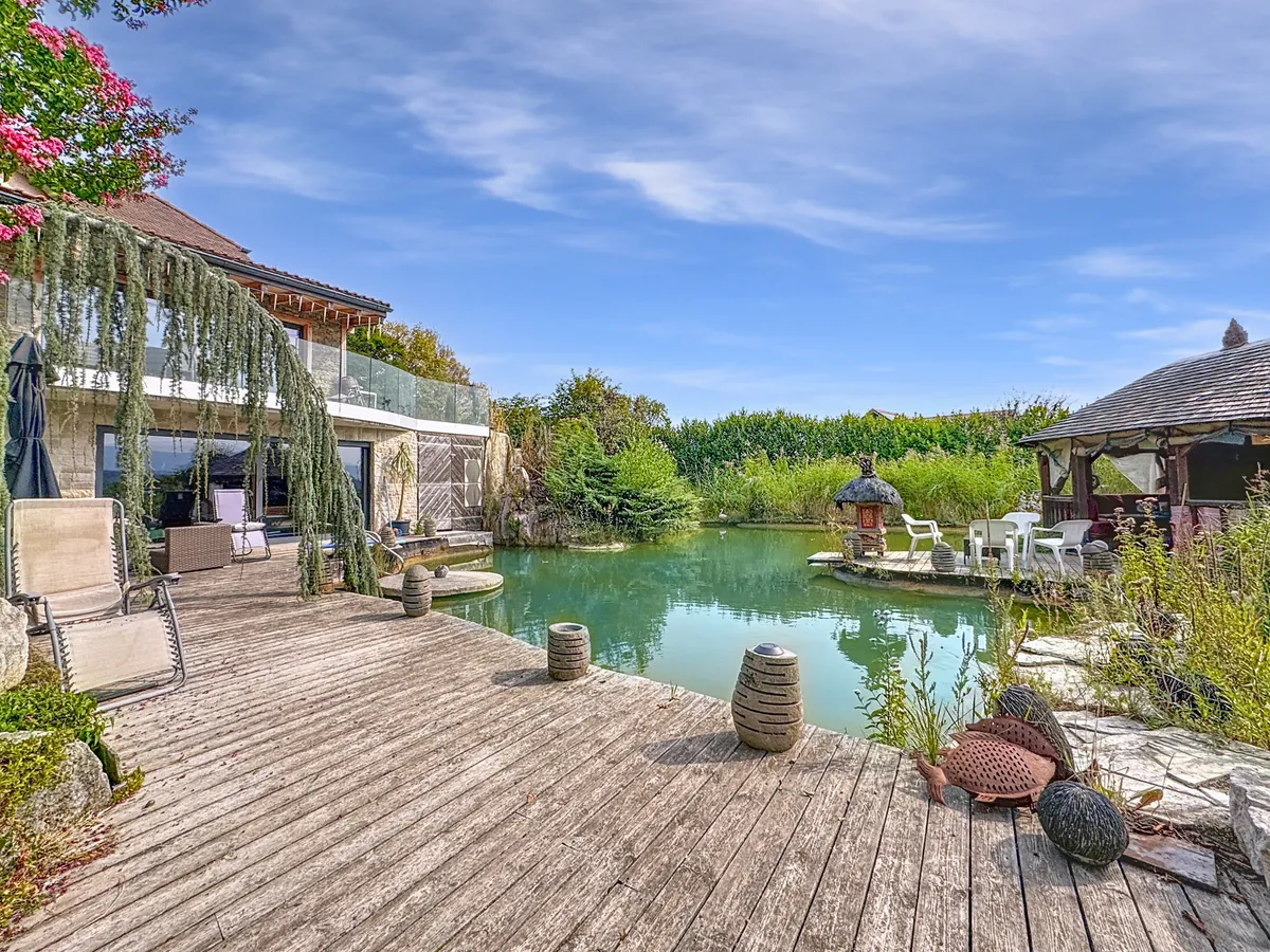 À l’extérieur, la magie opère dans un jardin arborisé pensé pour le plaisir et la convivialité. L’étang, véritable joyau de la propriété, invite à la baignade au milieu des poissons et des tortues, dans une atmosphère paisible et dépaysante. Juste à côté, le pavillon de jardin Crown, équipé d’un chauffage pour profiter de l’hiver, devient le lieu idéal pour se retrouver entre amis ou en famille. Son décor asiatique, sublimé par la présence d’un grill et d’un four à pizza, transforme chaque soirée en un voyage culinaire et festif, au bord de l’eau.