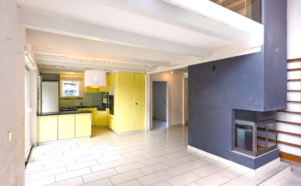 Rez-de-chaussée inférieur : 1 entrée, 1 séjour, 1 espace repas, 1 cuisine ouverte, 1 véranda